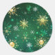 Xmas Golden Snowflakes on Green Background Classic Round Sticker