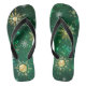 Xmas Golden Snowflakes on Green Background Flip Flops