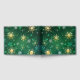 Green Christmas background with gold and green jewellery snowflakes. Golden snowflakes. Xmas.