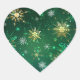 Xmas Golden Snowflakes on Green Background Heart Sticker