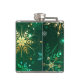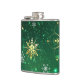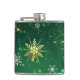 Xmas Golden Snowflakes on Green Background Hip Flask