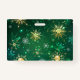 Xmas Golden Snowflakes on Green Background ID Badge