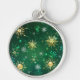 Green Christmas background with gold and green jewellery snowflakes. Golden snowflakes. Xmas.