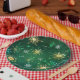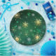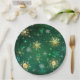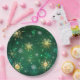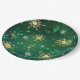 Xmas Golden Snowflakes on Green Background Paper Plate