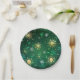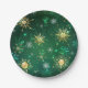 Xmas Golden Snowflakes on Green Background Paper Plate