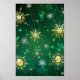 Green Christmas background with gold and green jewellery snowflakes. Golden snowflakes. Xmas.