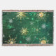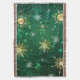Xmas Golden Snowflakes on Green Background Throw Blanket