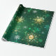 Xmas Golden Snowflakes on Green Background Wrapping Paper