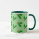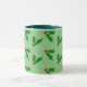 Bright green twigs of holly scattered over a pastel green background--the perfect way to serve your favourite hot Christmas beverage. You'll want a whole set.