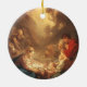 Beautiful fine art reproduction Christian nativity ornament shows baby Jesus in manger with Mary and Joseph. Angels keep watch overhead. In soft colours by artist Boucher. Lovely gift for Christians and fine art lovers, not just during the holiday season.