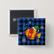 Xmas Tropical Fish Cartoon on Blue Buffalo Pattern 15 Cm Square Badge