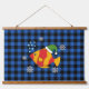 Xmas Tropical Fish Cartoon on Blue Buffalo Pattern Hanging Tapestry