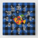 Xmas Tropical Fish Cartoon on Blue Buffalo Pattern Square Wall Clock