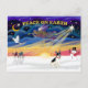 Christmas sunrise with a Rat Terrier. The star of Bethlehem lights the way for three wise men as the sun bursts over the horizon and an angel trumpets the great news. The words say Peace on Earth.