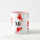 A cute pink Valentine's Day mug with a kawaii-style design of hearts and "XO XO" text.