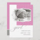 The modern, elegant XOX Girl birth announcement in a flat card design by Social Grace Stationery™ features the artful use of typography, simple graphics and colour to highlight your baby’s photo and birth information. It is available in a variety of paper stocks. Take a peek at our coordinating baby shower invitations and thank you note cards. ©2012 Social Grace Stationery™