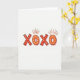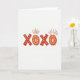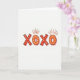This greeting card shows the text “XOXO” centered on a white background, making it the clear focus right away. The two X’s are coral-red with small white polka dots, and each letter is outlined in black for a crisp, illustrated look. The two O’s are a warm orange, with the same white polka dots and black outlines to match. Under the letters, there’s a soft blush-pink shadow that adds a gentle glow and a bit of depth. Above the O’s, short coral-red lines spread upward like little rays, as if the message is shining with affection. The “XOXO” lettering looks like thick, rounded display letters, and it sits right in the middle of the front. It feels meaningful because it says “hugs and kisses” in a simple, cheerful way that works for a partner, close friend, or anyone you care about 🥰❤️. Hope it helps you share your Valentine’s Day feelings with someone special.