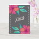 Share love in a bold, modern way with this romantic Valentine’s Day card featuring vibrant pink watercolor flowers, teal leaves, and a dark charcoal background with a playful “XOXO” sentiment on the front. This design was created by hand (no artificial intelligence was used) and is perfect for expressing love to a partner, spouse, or significant other.