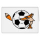 Hilarious cute red fox peaking out from behind a soccer ball cartoon design. Unique and fun and a great gift idea. Can also add custom text (like your favourite team) and change background colour when ordering. Great for sports fans.