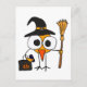 Hilarious cute bird dressed as a witch and holding a trick or treat bag and a cell phone cartoon design. Unique and fun and a great gift idea. Can also add custom text when ordering. Sure to bring a smile. Many of the initial designs say Twick or Tweet.