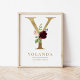 Y Letter Monogram Name Marsala Floral Nursery Poster