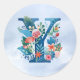 Monogram Y in blue with beautiful floral design on blue cloudy sky with fluffy white clouds. AI-generated.