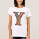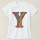 This design features the letter "Y" in a stylish and artistic design, ideal for a vibrant and unique t-shirt print. The "Y" is crafted with a series of colourful, wavy lines that flow seamlessly through its structure, creating a sense of movement and dynamism. The colour palette includes warm oranges and yellows, as well as cooler blues and greens, all enclosed within a bold outline that gives the letter a distinct, three-dimensional look. The intricate patterns within the "Y" add depth and texture, making it an eye-catching centerpiece for any apparel.