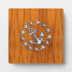 An American yacht flag nautical symbol silver chrome like applique on a teak wood grain style decor. A classy custom nautical style gift for yourself or for someone special, on or off the boat.
