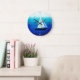 Clock in semi abstract, minimalist poster art of a yacht at sea, on a cobalt and cerulean blue ocean background