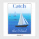 Sticker in Poster art of yachts at sea, with the phrase "catch the wind", on a cobalt and cerulean blue ocean background