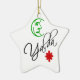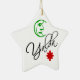 A quality product. Very nicely printed which wraps around the edge with a plain back. Not at all to heavy to fall off that tree branch. The printing seems crisp and robust enough to last for many a Christmas.