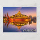 The beautiful Karaweik Palace is featured on this Yangon postcard. Built in 1974, Karaweik is not actually a historical palace, but a restaurant and home to a traditional Burmese cultural show. The venue takes its name because it was fashioned after the majestic royal barge that the monarchy of Burma once used to travel up and down the Irawaddy River. This popular Myanmar tourist destination floats in Kandawgyi Lake in the Rangoon city centre.