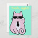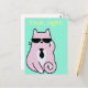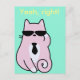 NewParkLane - Fun Postcard with a sweet, cool pink cat with sunglasses, against a teal background (colour is easy to customise) with fun quote 'Yeah, right!'