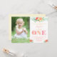 Floral 1st Birthday Photo Invitation cards for girl in sunshine summer colours such as yellow, coral and pink