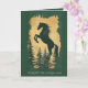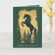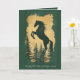 Majestic forest silhouette of a rearing horse with warm golden tones, styled for Year of the Horse 2026. An elegant New Year greeting for nature lovers and equestrian gifts. Blank layout with editable fields inside for your message, name, city, and year. Card
