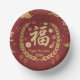 Celebrate the Lunar New Year 2026 with this stunning elegant paper plate design. The rich red and gold color palette is classic and festive, featuring the prominent "Fu" (福) character for Good Fortune and Prosperity at the center. The plate is beautifully adorned with traditional Chinese elements like auspicious clouds, pink cherry blossoms, red lanterns, and a gold laurel wreath frame. Perfect for serving appetizers, cake, or main courses at your Chinese New Year party, Spring Festival gathering, or Year of the Horse celebration. The year "2026" is fully customizable for any year!
