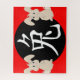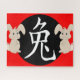Chinese character for Rabbit zodiac sign and bunny illustration in white on red and black.