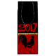 Wine gift bag with a black rooster on red background with decorative lettering. Don't forget the whole collection: greeting card, postcard, postage, stickers... For Chinese New Year 2017 or Birthday. ------------ People born within these date ranges can be said to have been born in the "Year of the Rooster", while also bearing the following elemental sign: