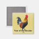 Year of the Rooster Magnet, featuring a colourful strutting rooster a gold background, and customisable text.