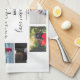 Yearly Family Keepsake Saying 12 Photo Collage kitchen towel. Modern design with the family saying in black script and family photo collage - 12 photos around the family name and year- add 12 favourite family photos and personalise the year number. You can customise the text if you want. It`s a fun and cute keepsake for your family. TIP: Make one towel every year and save your family`s best moments.