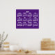 Yearly calendar 2023 with white text on purple background. Dimensions of the poster are 24 inches by 20 inches (horizontal).