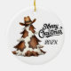 A Cute Merry Christmas Yearly Round Ceramic Western Tree Ornament