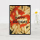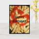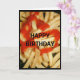 A closeup photograph of golden french fries, covered in ketchup, is the subject of my "Happy Birthday - The Years Never Seem To Ketchup To You!" birthday card.