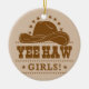 Yee Haw Girls Cowgirl Hat Design Ceramic Tree Decoration