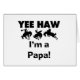 Yee Haw I'm a Papa T-shirts, mugs, cards, stickers, announcement buttons, papa keepsakes, and other papa apparel and gifts with a buckaroo horse and black or white text design. These papa apparel and gift items are perfect for first time grandparents or seasoned papas of a new arrival!