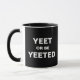 A simple design with the text 'Yeet or be Yeeted' in white on a black background. Feel free to change the font, colours and text size :)