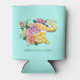 A Yellow Albino Ball Python is coming around pink and peach roses in a backdrop of teal.