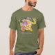I give wanted to give this a 4 instead of a 5 because these Basic DARK T0shirts run unexpectedly SLIM or Narrow. Which is great if you do not have a potbelly, but I have a paunch. It isn't the shirt's fault that I've got a beer belly. The design and shirt itself is a quality cotton shirt. The color is more of a deep purple, but still a very pretty color. The Basic DARK T-shirts run a bit SLIMMER than the Basic Ts. The neck is a fraction narrower (or seems to be narrower) also. I'm a paunchy middle-aged woman and my neck is 12 inches (31cm) thick and the neckline fell about the same as in the photo of the man, and I had the desire to tug it a bit. So if you're a thick necked man or like loose shirts, be aware these are slimmer shirts. Once I get rid of my lockdown paunch it'll look great. The shirt washed well in cold water with no apparent bleeding. We don't have a dryer, so it hung dry. Did not shrink. Love the colors and the design. The design looks smaller on my shirt than it does on the model on-line. But still, it looks good on the shirt. The printing looks as it does on the model, just the size seems fractionally smaller. Washed garment in cold water, hung dry and design appeared unaffected.