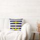A bright yellow silhouette of an anchor is on a navy blue and white striped background. A fun, nautical design.