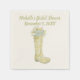 Create a special custom touch for bridal showers with these sweet personalised paper party napkins. These napkins feature a yellow floral-patterned rain boot filled with a bouquet of spring blooms and light green text against a cream or ivory coloured background. Use the fill-in-the-blank template fields to easily customise these party supplies with your party details. Find coordinating products and party supplies in the Spring Rain Boot Shower collection from Asterisk Designs.